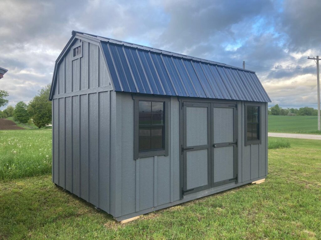 10′ x 16′ Side Utility Shed This shed has transom windows in the doors to add lighting and beauty! The foundation is also sealed off with skirting!